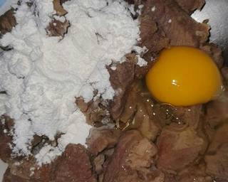 - Siapkan bahan2 lainnya. Tiriskan daging yg sdh di rebus,tambahkan telur dan maizena,aduk rata lalu goreng daging hingga kuning kecoklatan