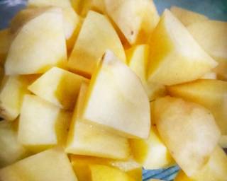 - Siapkan semua bahan. Kupas kentang dan rendam dengan air garam